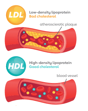 Elevated cholesterol levels lead to plaque buildup in the arteries which can eventually cause a heart attack or stroke. Keeping LDL low and HDL high can help lower your heart disease risk. Talk to your healthcare provider to get a lipid profile and find out your levels!
